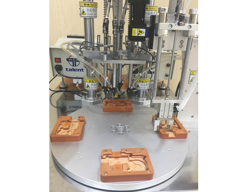 采用轉(zhuǎn)盤(pán)式四工位結(jié)構(gòu)、由人工上料,四軸鎖附機(jī)構(gòu)裝配螺絲,下個(gè)工位是下料工位。作業(yè)時(shí)四工站聯(lián)動(dòng)作業(yè),人工上料,機(jī)器作業(yè),下料機(jī)械手替代人工下料,PLC程序控制及個(gè)性化設(shè)計(jì),性價(jià)格比高、操作簡(jiǎn)單、維護(hù)方便??梢渣c(diǎn)擊多功能鎖螺絲機(jī)視頻了解更多關(guān)于深圳特了得自動(dòng)化制程案例。